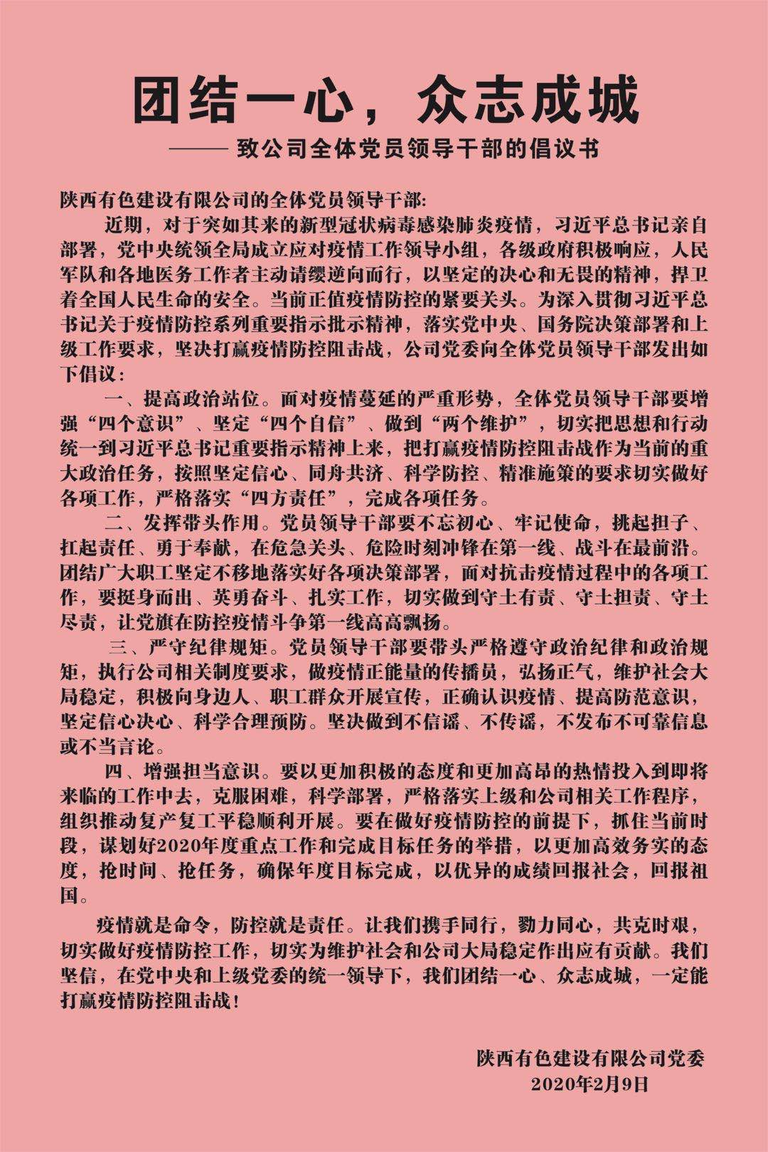【疫情防控】團結一心,眾志成城——致公司全體黨員領導干部的倡議書