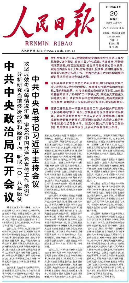 2019年4月19日,中共中央政治局召開會議,審議《中國共產黨宣傳工作條例》