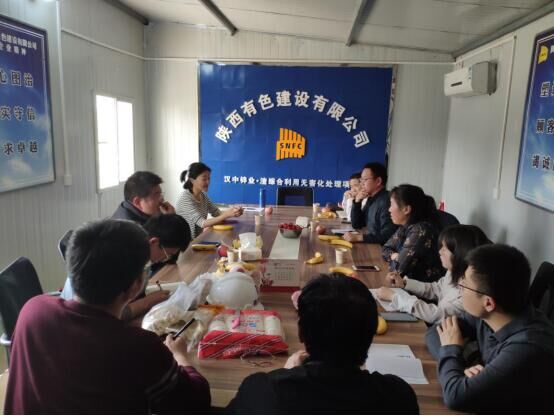 隨后工作組召集項目部相關人員在項目部會議室召開了工作座談會。許書記指出鋅業渣綜合利用無害化處理項目作為有色集團重點項目,思想上重視,行動上要認真,要迎難而上,克服困難,確保實現項目的目標任務。隨后工作組現場辦公,對施工圖紙和施工進度做了詳細研究,許書記和??偮鋵嵕唧w措施,對項目部給予了大力支持。最后施工項目負責人譚永祥感謝了院領導對項目的關心和幫助,同時也表示會不負重托,全力配合業主,按期完成漢中鋅業渣綜合利用無害化處理項目的施工任務。